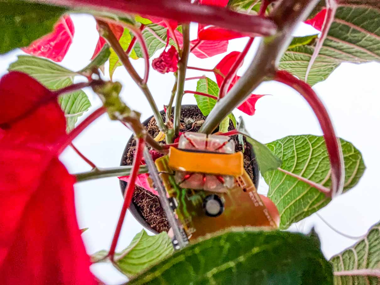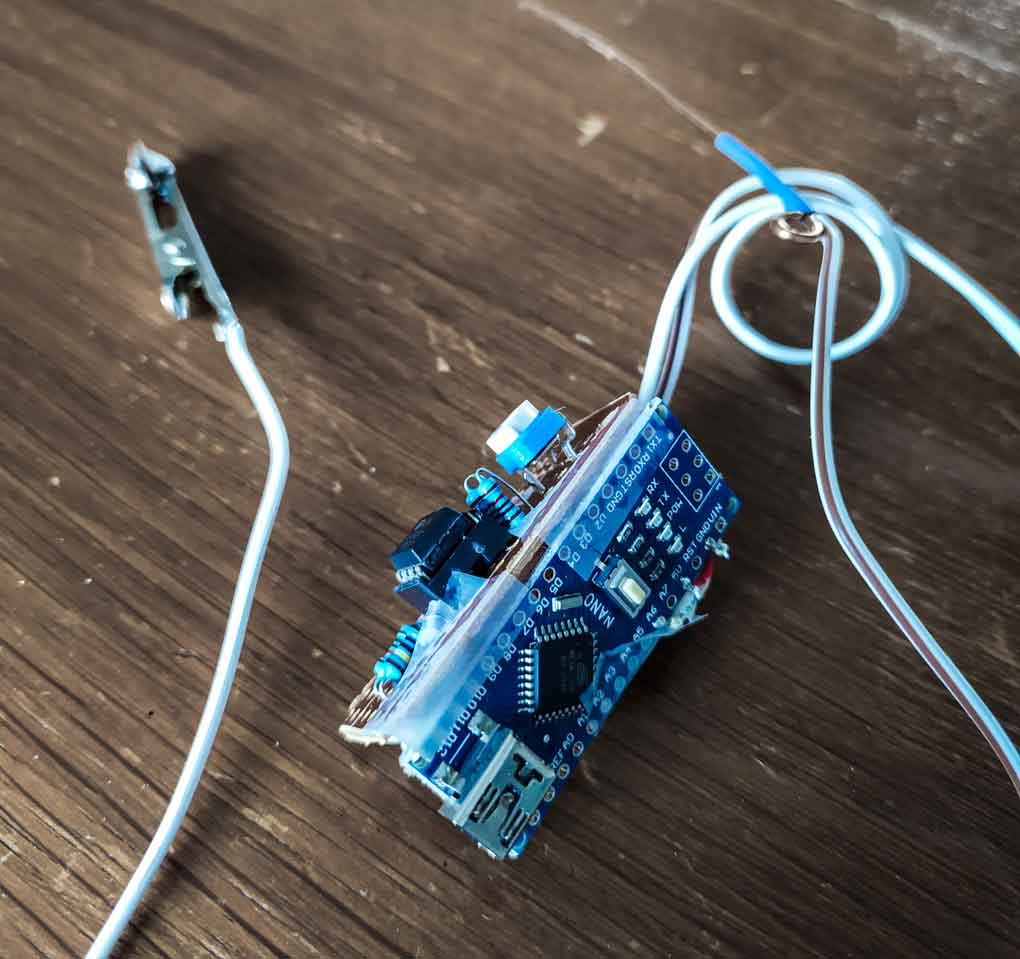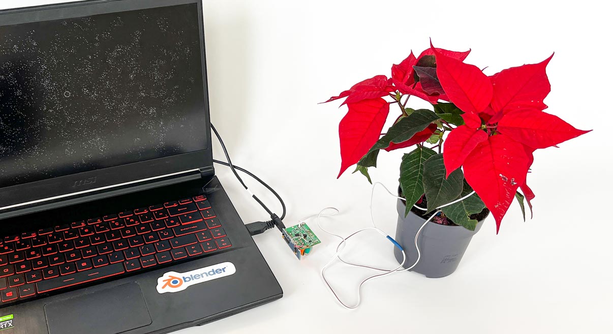 J'espère capter l'activité électrique de la plante grâce aux sondes, afin de les réinjecter dans un script de creative coding pour le faire évoluer au rythme de la vie "psycho-biologique" de la plante.